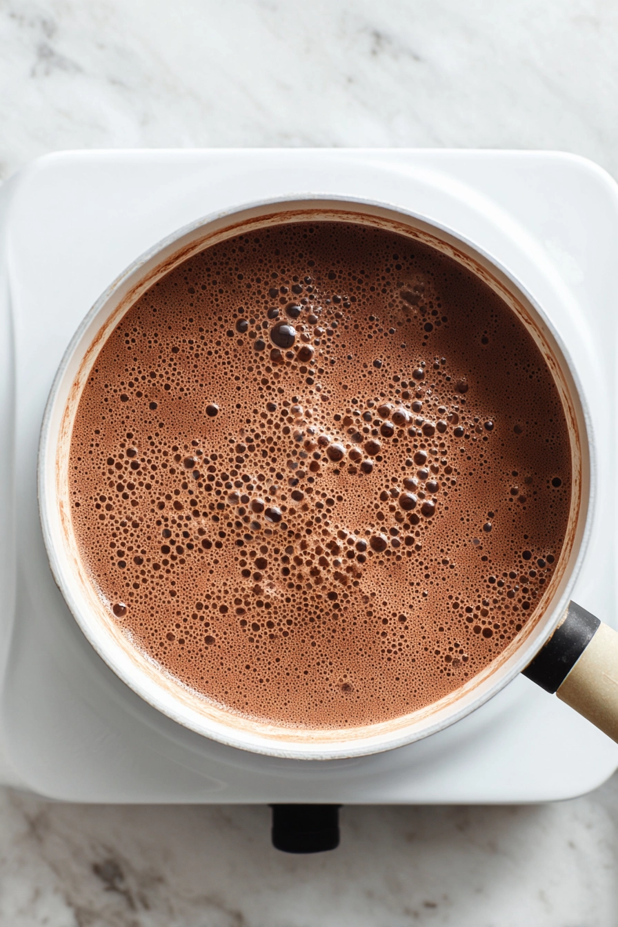 - Boil chocolate mixture: In a medium saucepan, combine sugar, butter, milk, cocoa powder, and salt. Place over medium-high heat and stir constantly until butter melts and mixture is smooth.