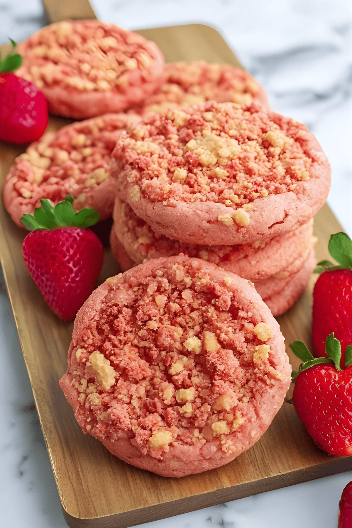 Classic Cream Cheese Frosting: This is Logan's favorite! Instead of (or in addition to) the crunch topping, frost cooled cookies with cream cheese frosting. The tangy frosting pairs beautifully with the sweet strawberry cookie. Sprinkle any leftover crunch topping over the frosting for texture.