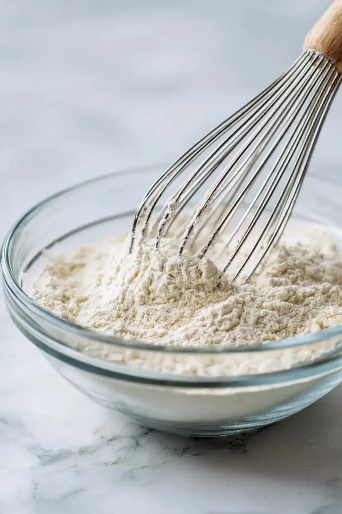 In a separate bowl, whisk together flour, baking powder, baking soda, corn starch, and salt. This ensures even distribution.